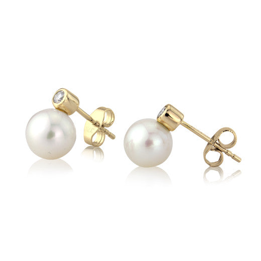 9ct Yellow Gold Pearl and Diamond Stud Earrings