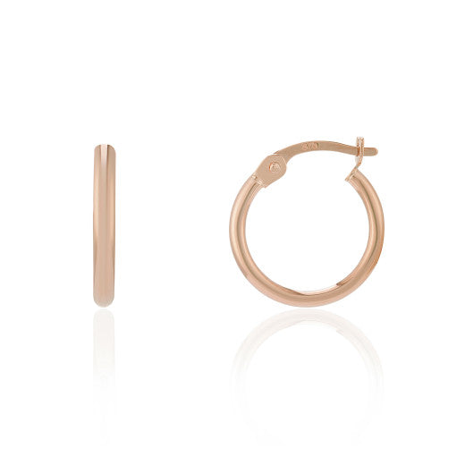 Small round tube hoop earrings fashioned from 9ct Rose Gold that are simple and sophisticated. Features a post and levered clip fittings for pierced ears. Also available in extra small, small and large. A must have addition to the wardrobe. Can be worn day or night, rain or shine!