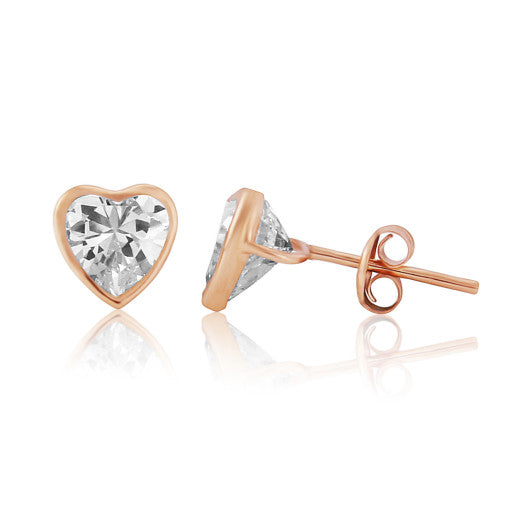 9ct Rose Gold Cubic Zirconia Large Heart Stud Earrings