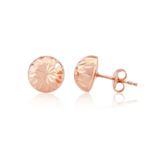 9ct Rose Gold Diamond Cut Half Ball Stud Earrings
