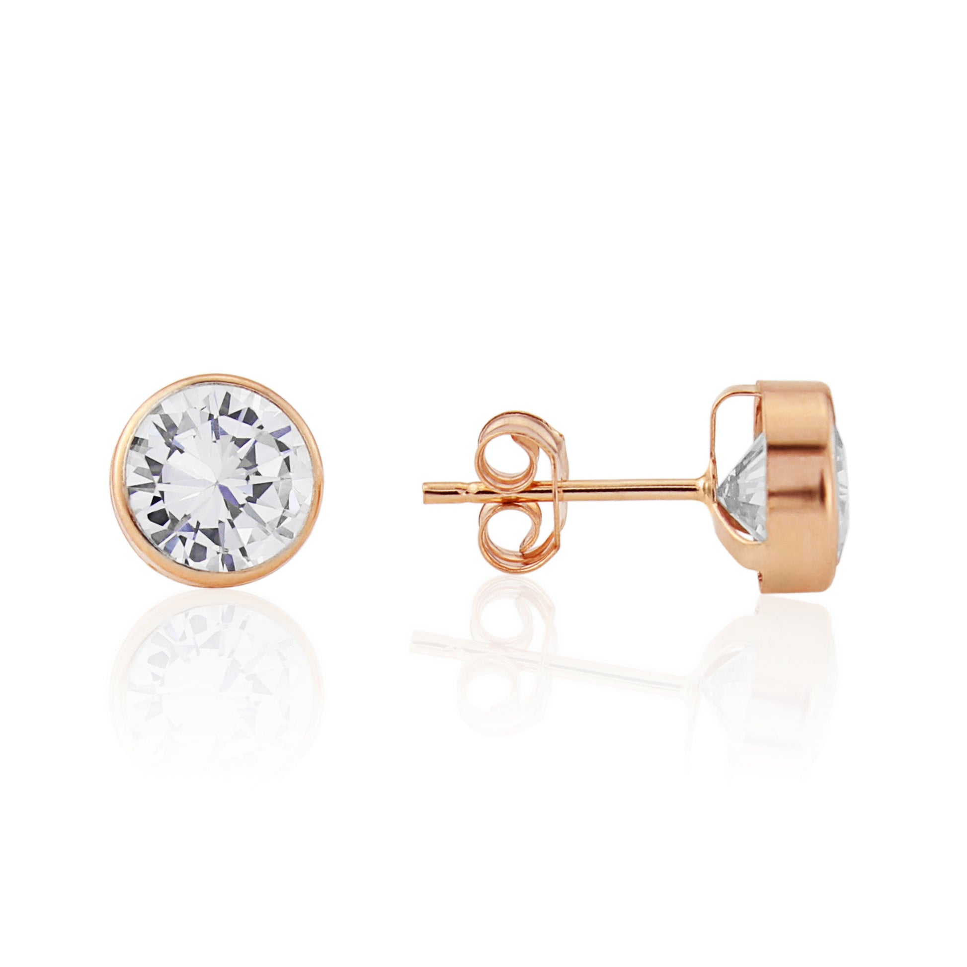 9ct Rose Gold Large Cubic Zirconia Stud Earrings