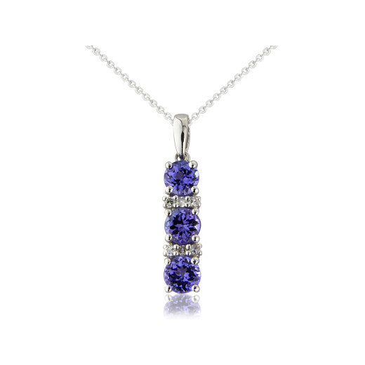 9ct White Gold Tanzanite and Diamond Three Stone Pendant