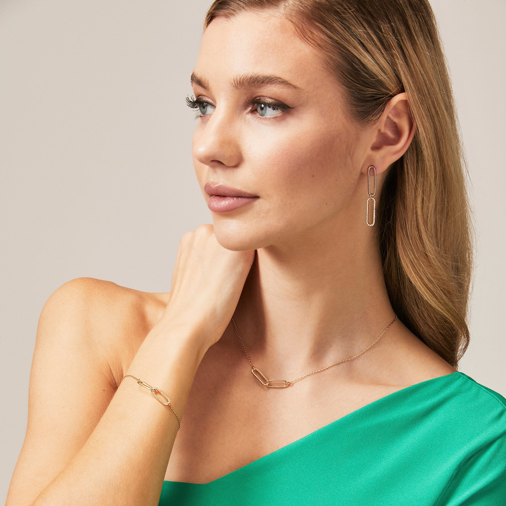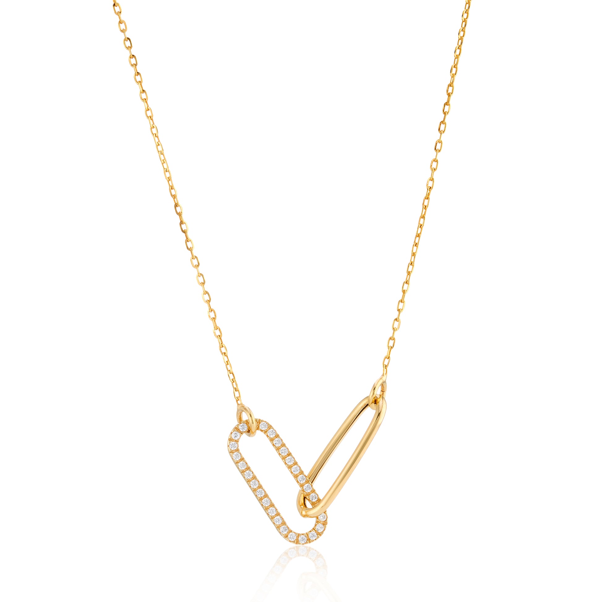 This necklace features two 9ct yellow gold interlocking links, one set with Cubic Zirconia and the other polished, plain yellow gold. Matching bracelet and earrings available.