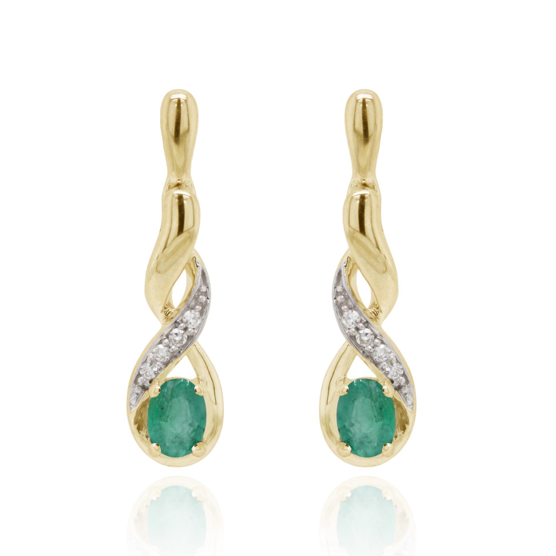 Stunning 9ct yellow gold emerald and diamond drop earrings. Add instant style to your wardrobe with a flash of Yellow Gold with this classic set of drop earrings. The earrings are crafted from 9ct Gold and feature a butterfly and post fitting.